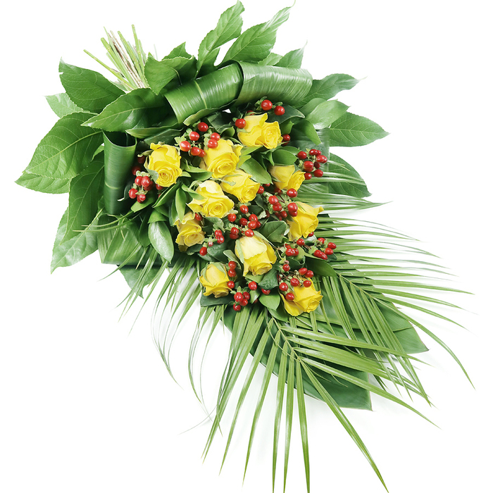 Our Heaven's Light Spray is a bright and brilliant tribute that will be a ray of light to honor the deceased and bring comfort to friends and family.